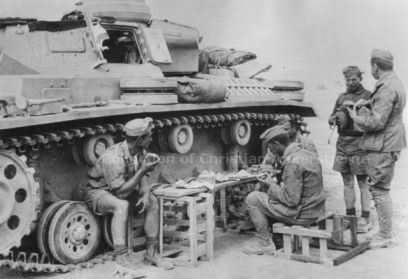 c) The paint scheme of the equipment that is already with the field units (dark gray or - for the units in Africa and on Crete - brown-gray) is not changed. Necessary camouflage is done with camouflage paste (2 through 4).