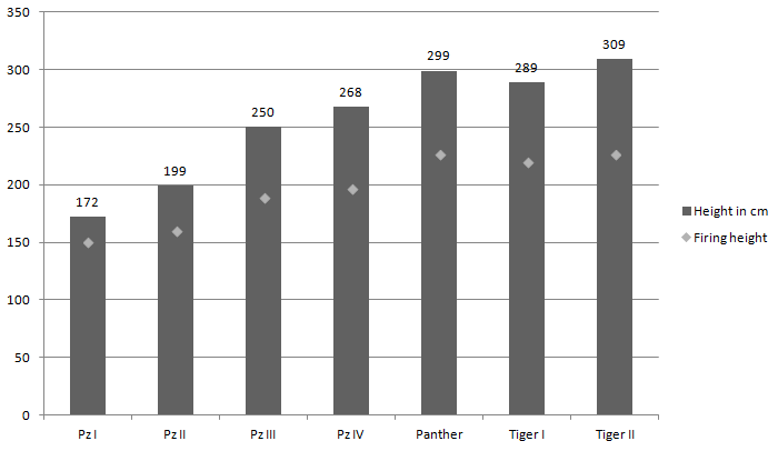 When discussing the survivability of tanks, the physical size of the tank is of great significance. Especially the profile is important, as especially anti-tank guns would generally attempt to fire against the side of a tank, rather than the front. In addition, the height and firing height of a tank is important, both in terms of target size, and in terms of how well the tank can be concealed in a hull-down position.